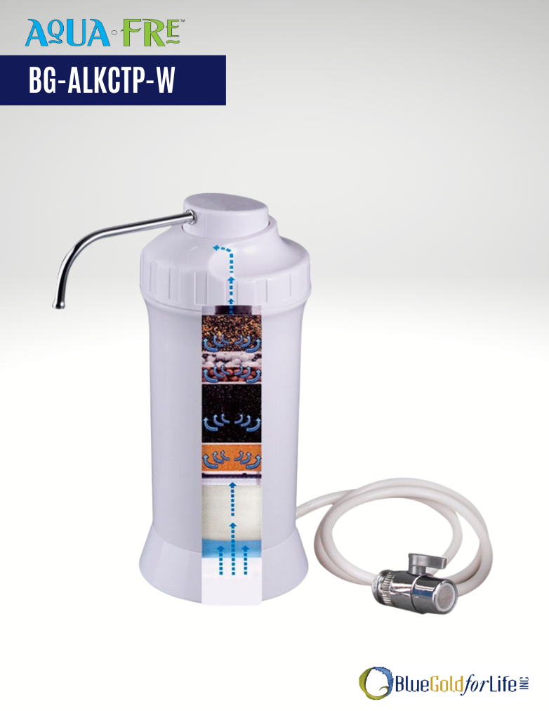 The Alkaline Ionizer Countertop System uses an 8-layer filter system that reduces chlorine, fluoride, and heavy metals. This system turns tap water into refreshing, clean, great-tasting alkaline water.